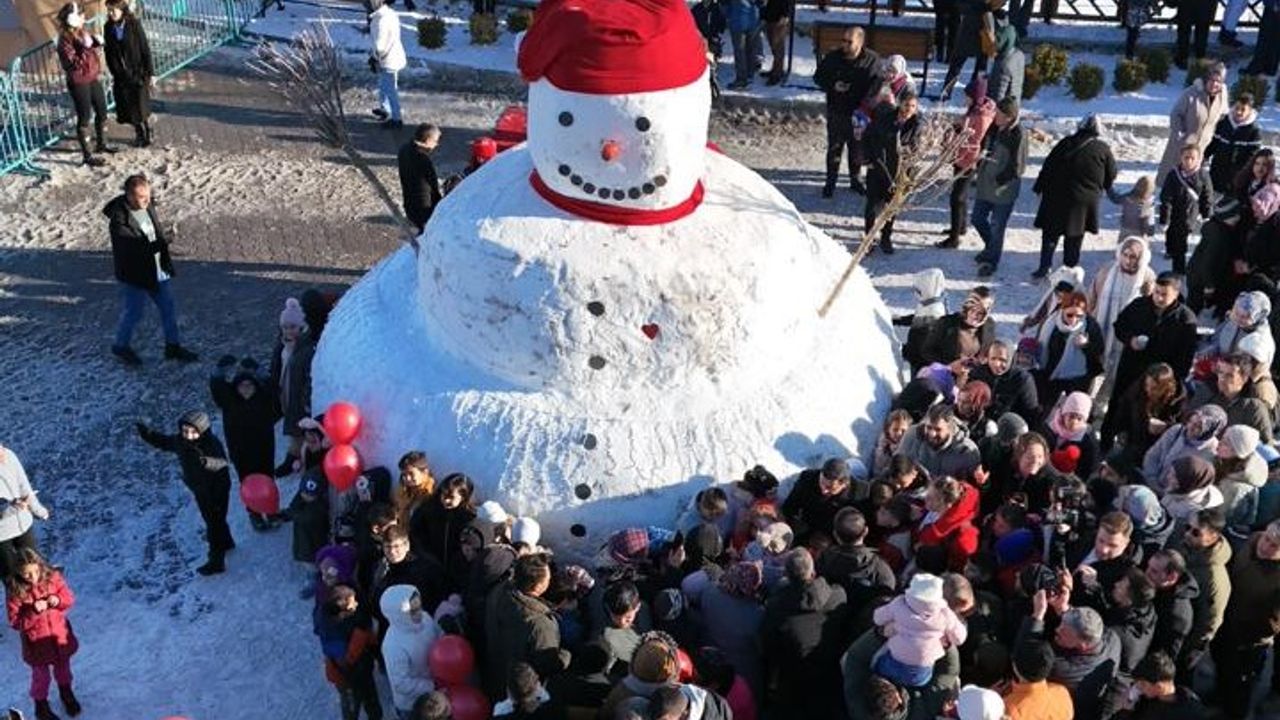 Beyaz örtünün zarafetini paylaşmak ve vatandaşlara keyifli anlar yaşatmak amacıyla dört buçuk metre boyunda ve yaklaşık 30 ton kar kullanılarak oluşturulan dev kardan adamda misafirlerinden yoğun ilgi gördü.