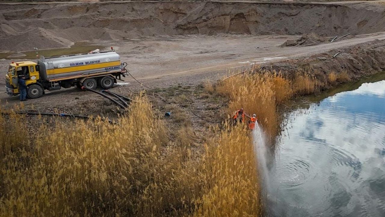 Gülşehir ilçe sınırlarından geçen Kızılırmak çevresi ile sazlık alanlarda yürütülen larva ilaçlama faaliyetleri, belediye ekipleri tarafından titizlikle uygulanıyor.