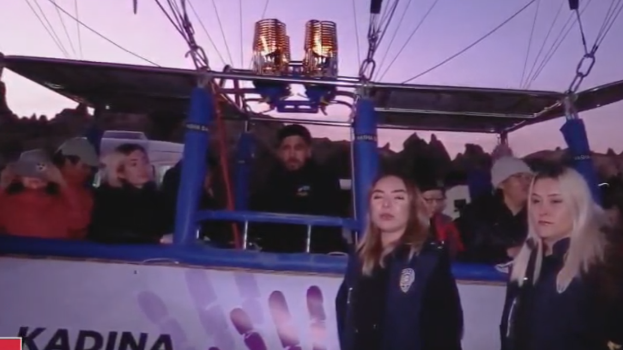 Etkinlik kapsamında sıcak hava balonu üzerinde yer alan “Kadına Şiddete Hayır” yazılı pankart ile Kapadokya semalarında uçtu.