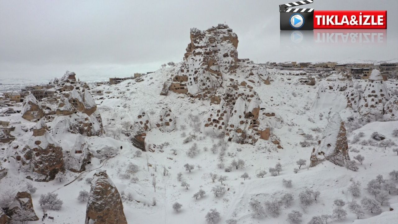 UNESCO Dünya Mirası Listesi'nde yer alan bölgede, turistlerin uğrak noktalarından Göreme, Uçhisar ve Ortahisar beldelerindeki peribacaları ile doğal kaya oluşumları, kar altında farklı bir manzaraya büründü.