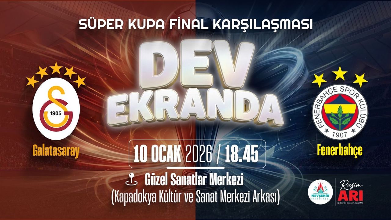 Nevşehir’de futbolseverler, Kapadokya Kültür ve Sanat Merkezi’nin arkasında bulunan Güzel Sanatlar Merkezi’ne kurulacak dev ekran karşısında Süper Kupa heyecanını hep birlikte yaşayacak. Organizasyon sayesinde vatandaşlar, dostluk ve sporun birleştirici gücü eşliğinde final coşkusuna ortak olacak.