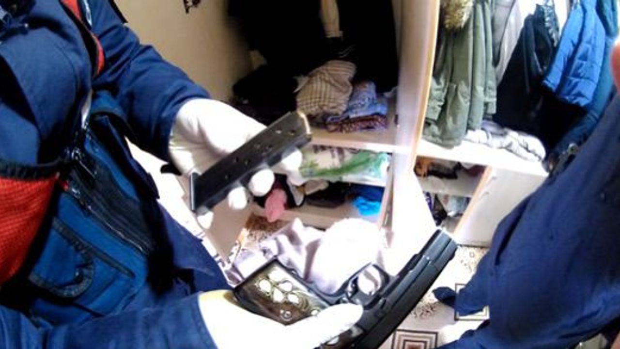 Yapılan aramalarda 1 adet ruhsatsız tabanca, 25 adet 9 tabanca fişeği, 2 adet ruhsatsız av tüfeği, 1 adet kılıç ve 1 adet sallama olarak tabir edilen bıçak ele geçirildi.
