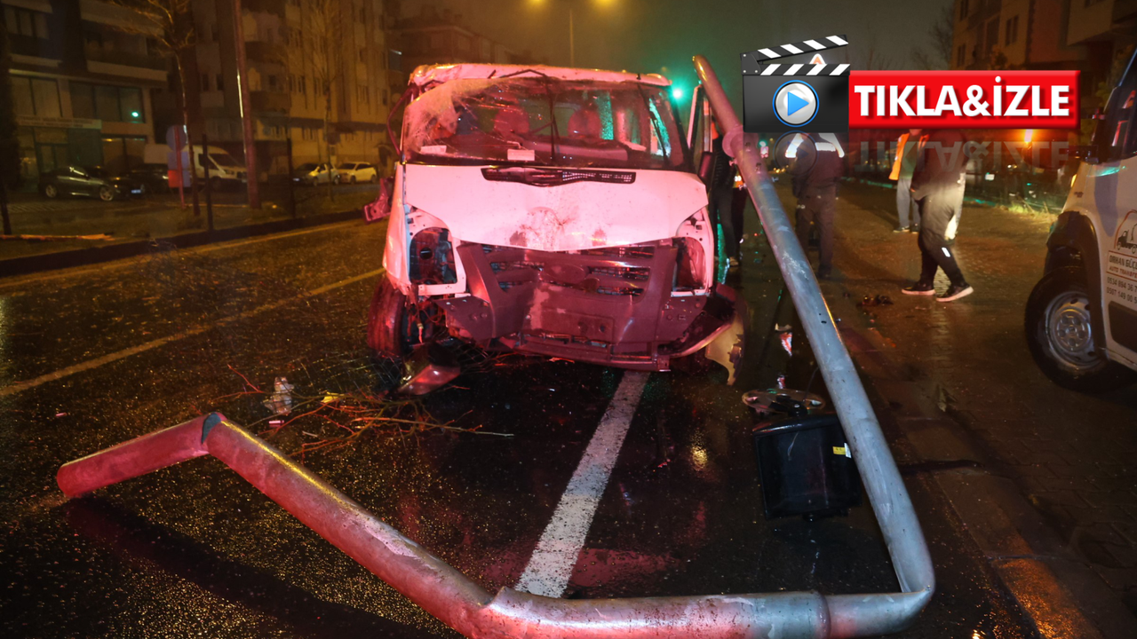 Kontrolden çıkan minibüs, orta refüjde bulunan 5 ağaca ve trafik lambası direğine çarptıktan sonra karşı şeride geçerek durabildi.
