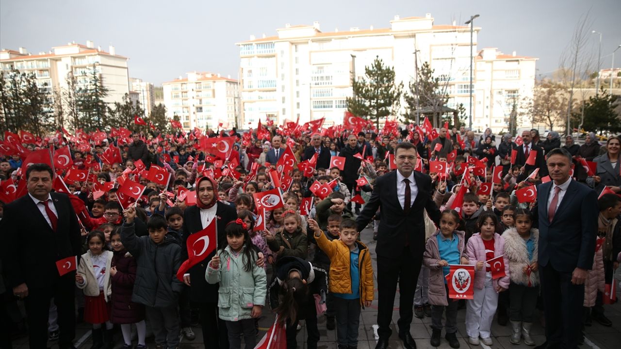 Mihriban Emin Günel İlk ve Ortaokulu'nda öğrenciler ve öğretmenler, okula Türk bayraklarıyla geldi.