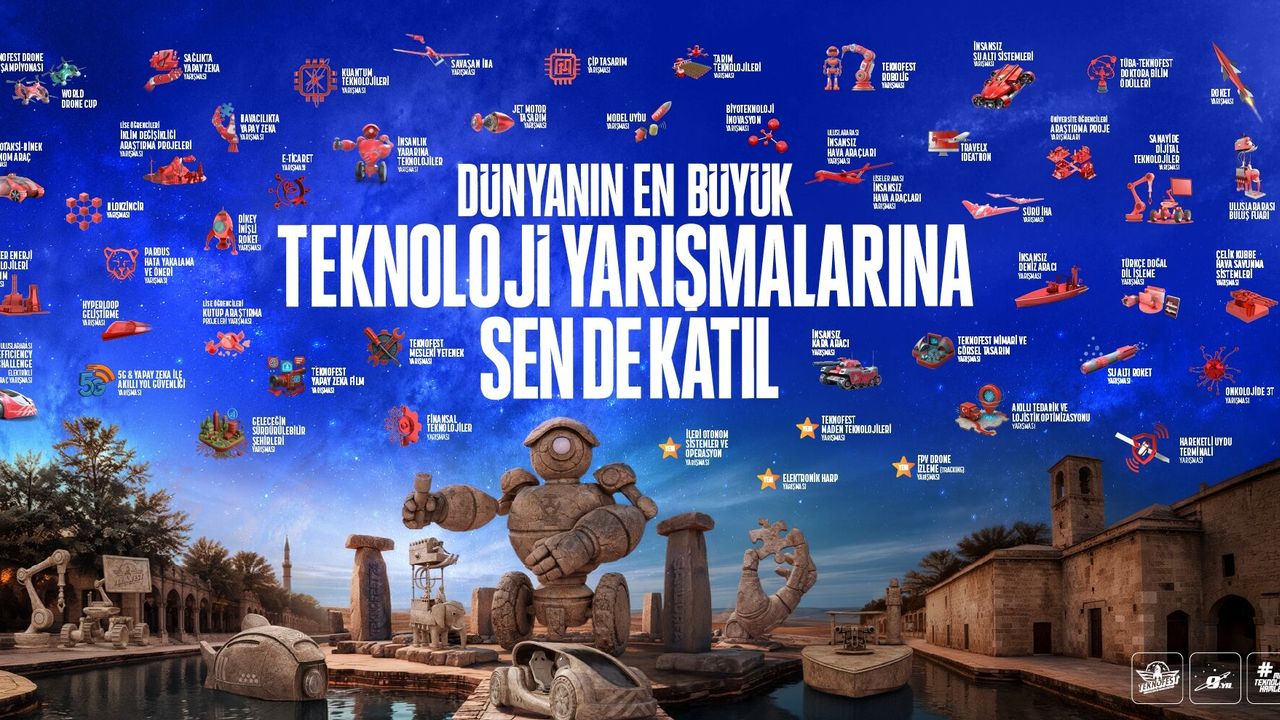 30 Eylül - 4 Ekim tarihleri arasında GAP Havalimanı’nda gerçekleşecek TEKNOFEST 2026, bilimi ve teknolojiyi tarihin sıfır noktası Şanlıurfa’da milyonlarla buluşturacak. Her yıl yenilenen yarışma kategorileriyle dikkat çeken TEKNOFEST, dünyanın en büyük ödüllü teknoloji yarışmalarına bu yıl da ev sahipliği yapıyor. 2026 yılında 51 yarışma ve 132 alt kategoride düzenlenecek TEKNOFEST Teknoloji Yarışmaları için başvurular, 28 Şubat’a kadar devam ediyor.