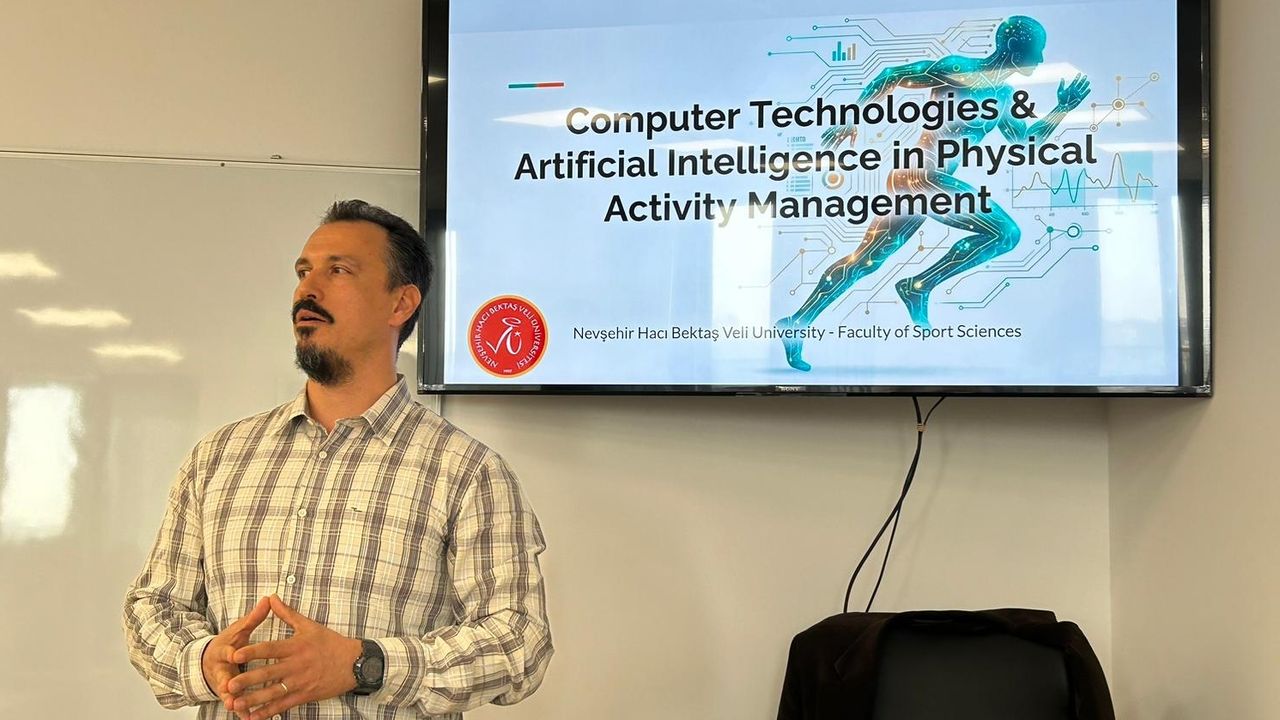 Nevşehir Hacı Bektaş Veli Üniversitesi (NEVÜ) öğretim üyesi, Plovdiv Tıp Üniversitesi’nde “Fiziksel Aktivite Yönetiminde Bilgisayar Teknolojileri ve Yapay Zeka” konulu seminer verdi.
