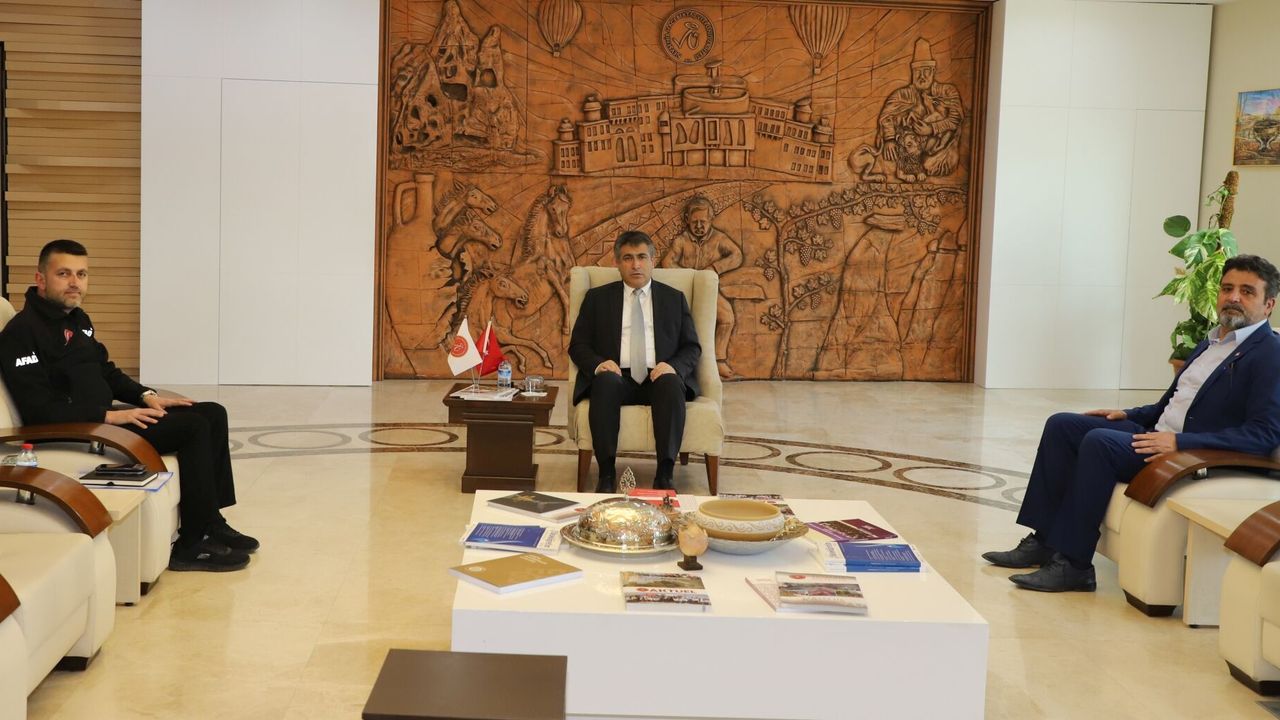 Nevşehir Valiliği İl Afet ve Acil Durum Müdürü Yasin Tokgöz, NEVÜ Rektörü Semih Aktekin’i makamında ziyaret ederek, yeni kurulan birim koordinasyonunda yürütülecek çalışmalar hakkında bilgi verdi. Görüşmede, NEVÜ Genel Sekreteri Nihat Çavuşoğlu da yer aldı.