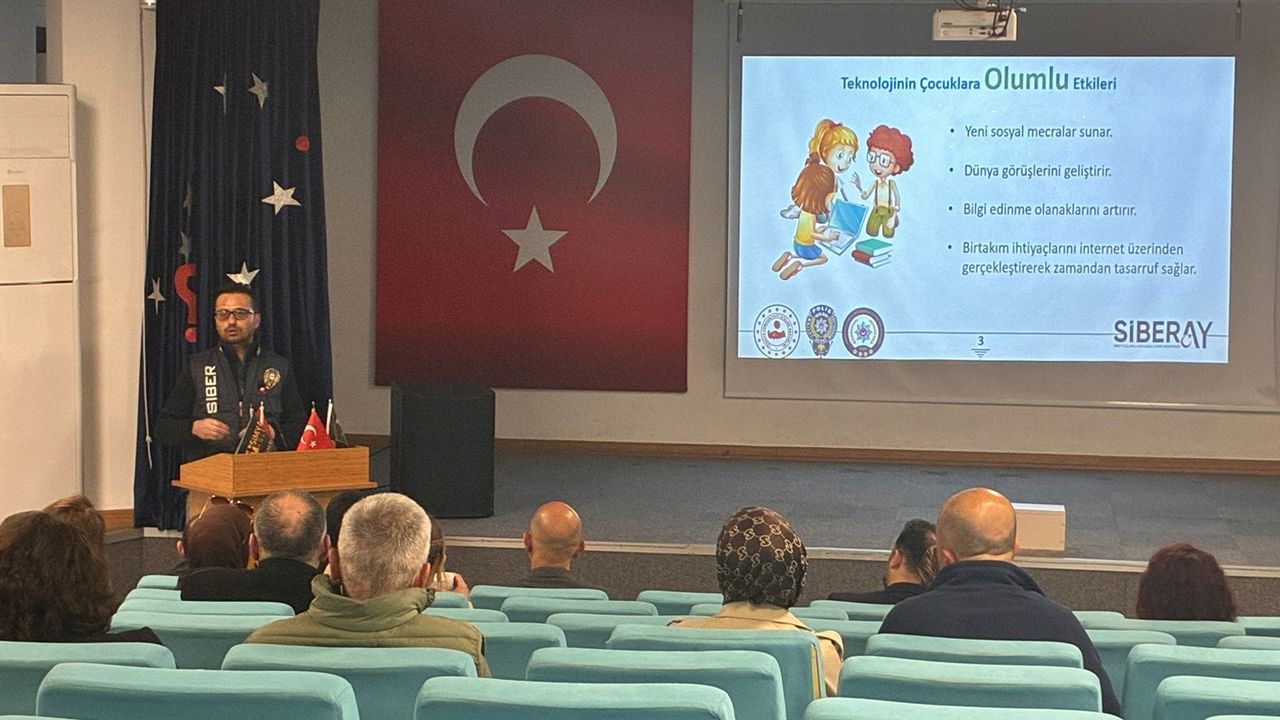 Emniyet birimleri tarafından yapılan sunumda, ailelerin çocuklarını dijital dünyada nasıl koruyabilecekleri konusunda rehber niteliğinde bilgiler verildi.