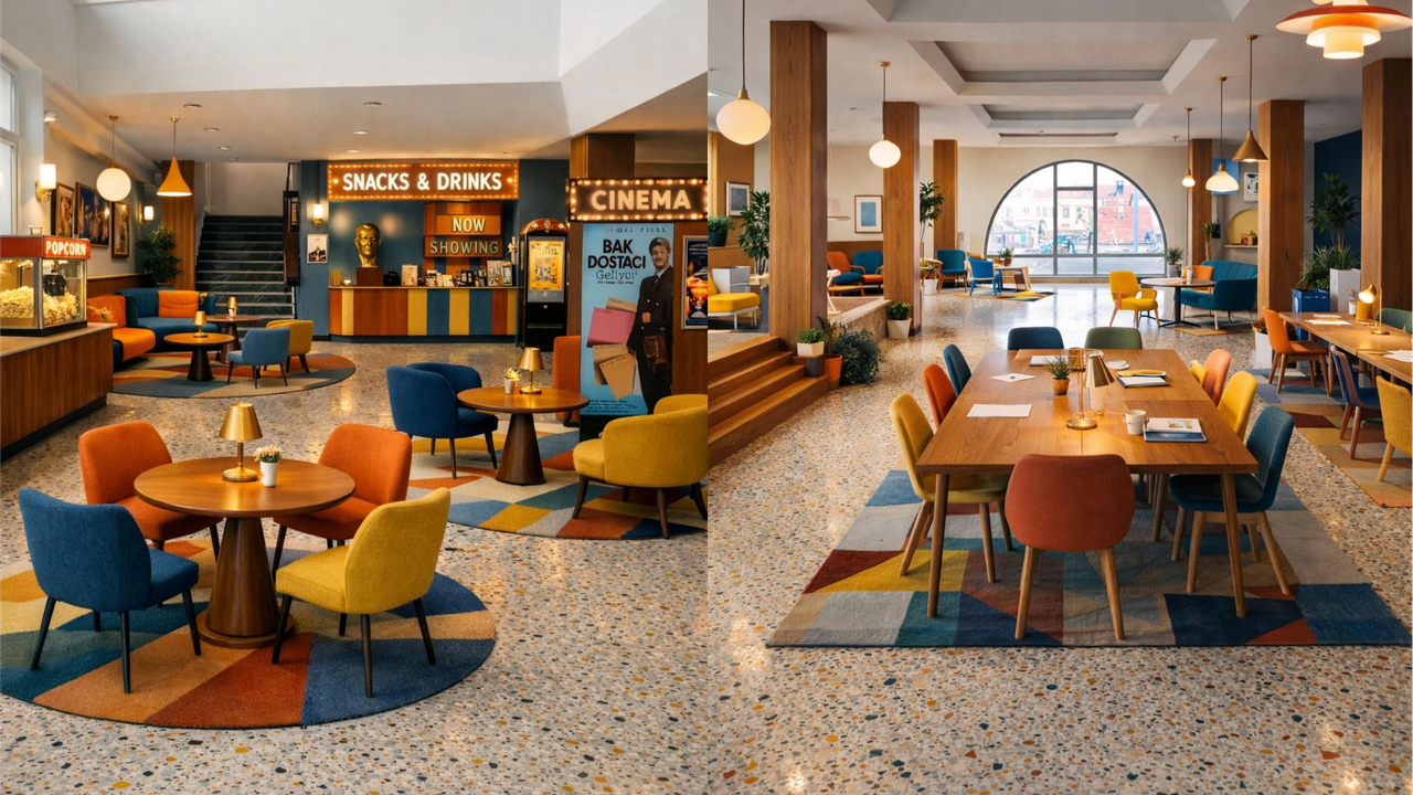Projenin dikkat çeken bir diğer bölümü ise giriş katında planlanan modern kafe konsepti oldu. Mevcut büfenin yerine kurulacak olan yeni kafe; ders çalışan öğrencilere, kültürel etkinliklere katılanlara ve sinemaya gelen ziyaretçilere kaliteli hizmet sunacak şekilde tasarlanacak.